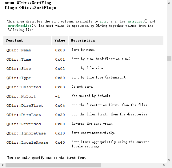 使用setReadOnly(bool)方法设置是否使用只读模式,setSorting()方法设置显示的文件和文件夹的排序方式,可传入以下参数(多个参数用竖线分开:self.model.setSorting(QDir.Name | QDir.IgnoreCase))。
